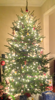 Our tree is finally up. It was a debacle of sorts that started at Thanksgiving. On the way to Thanksgiving dinner we passed one of those lots that is essentially a strand of lights surround some fir trees. “We should get a Christmas tree.” I commented. “We should get one geographically close to our house.” was M’s response. On the way home from Thanksgiving: “You know, Christmas is coming pretty soon. We should get a tree.” “We should wait not get a tree from there.” – M pointing at the same tree lot. In his defense it would have meant driving most of the way home with a tree across our car.